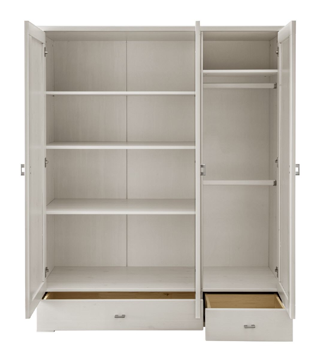 rechts 2 Kleiderstangen und ein Einlegeboden.