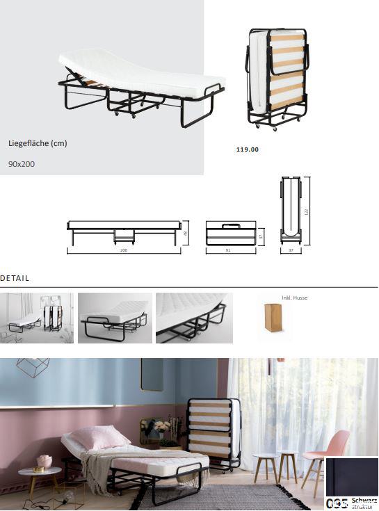 Sie sind hier: Startseite » Matratzen, Lattenroste & Klappbetten Klappbett Dirk Raumsparbett 90 x 200 Liegefläche 90 x 200cmmit Kopfteilverstellungincl. Kaltschaummatratzeincl. Husseohne Deko Aktion war erfolgreich Das hat leider nicht geklappt. Warenkorb anzeigen Zur Kasse gehen Weiter einkaufen Lieferbar in 3-10 Werktagen 486,00 EUR zzgl. Versandkosten Anzahl: St In den Warenkorb