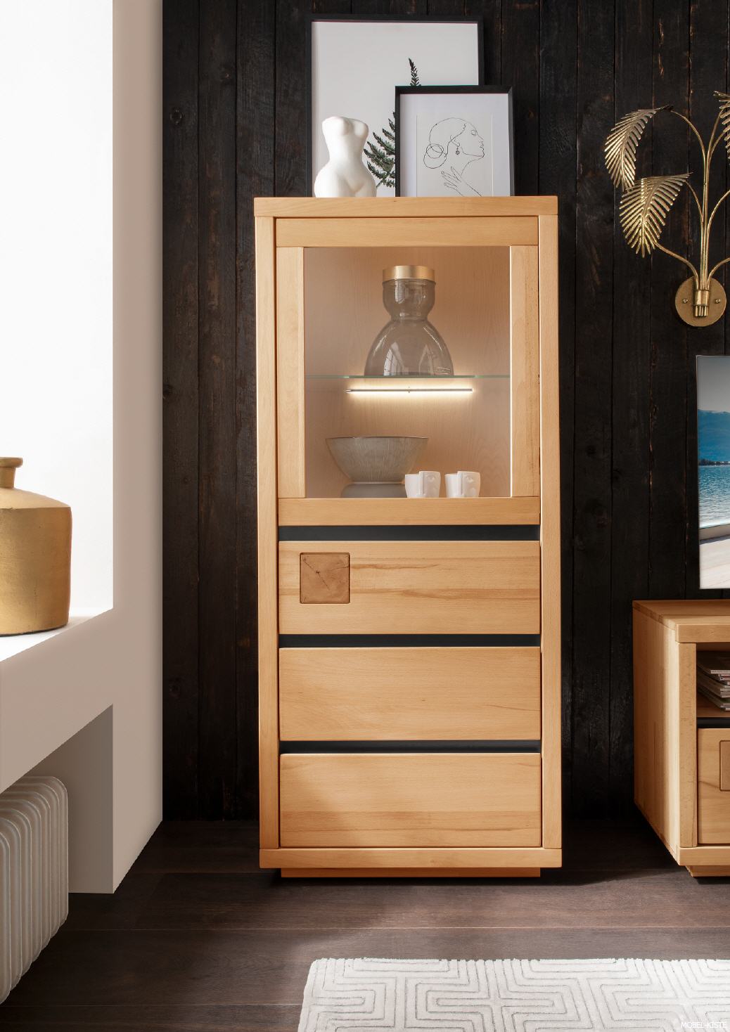 1x Glastür;3x Schubkasten; 1x Glaseinlegeboden