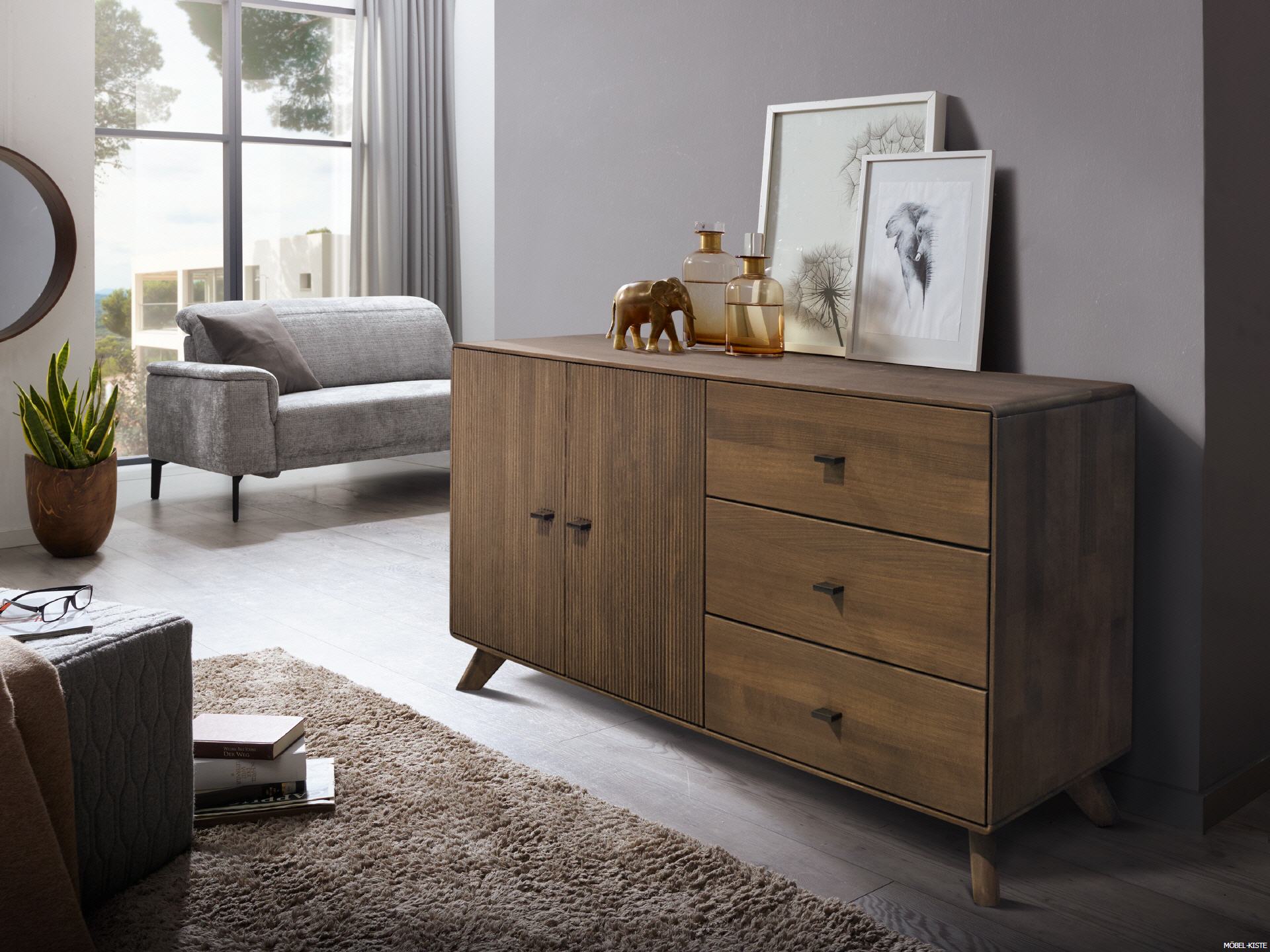 Sideboard-1 "Ben" Kernbuche massiv Tabak geölt
