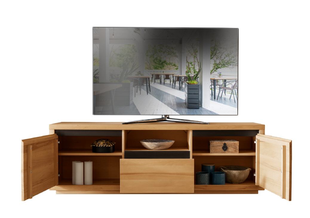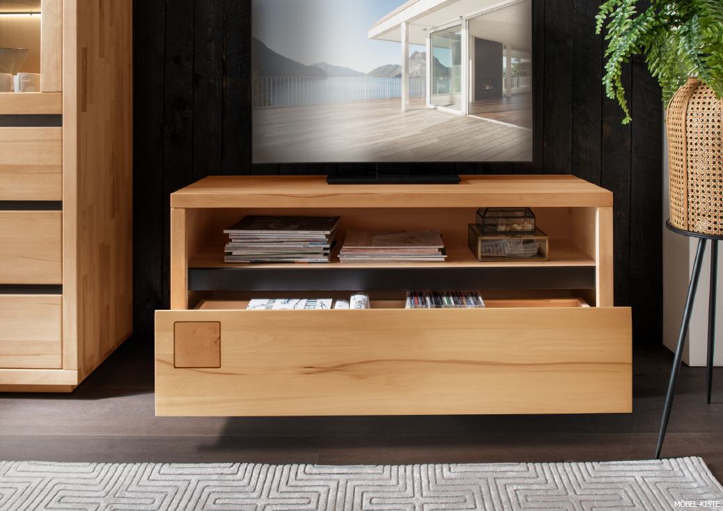 Bei der Ausführung Kernbuche geölt: Außenseiten und Korpus parkettverleimt, Fronten durchgehende Lamellen