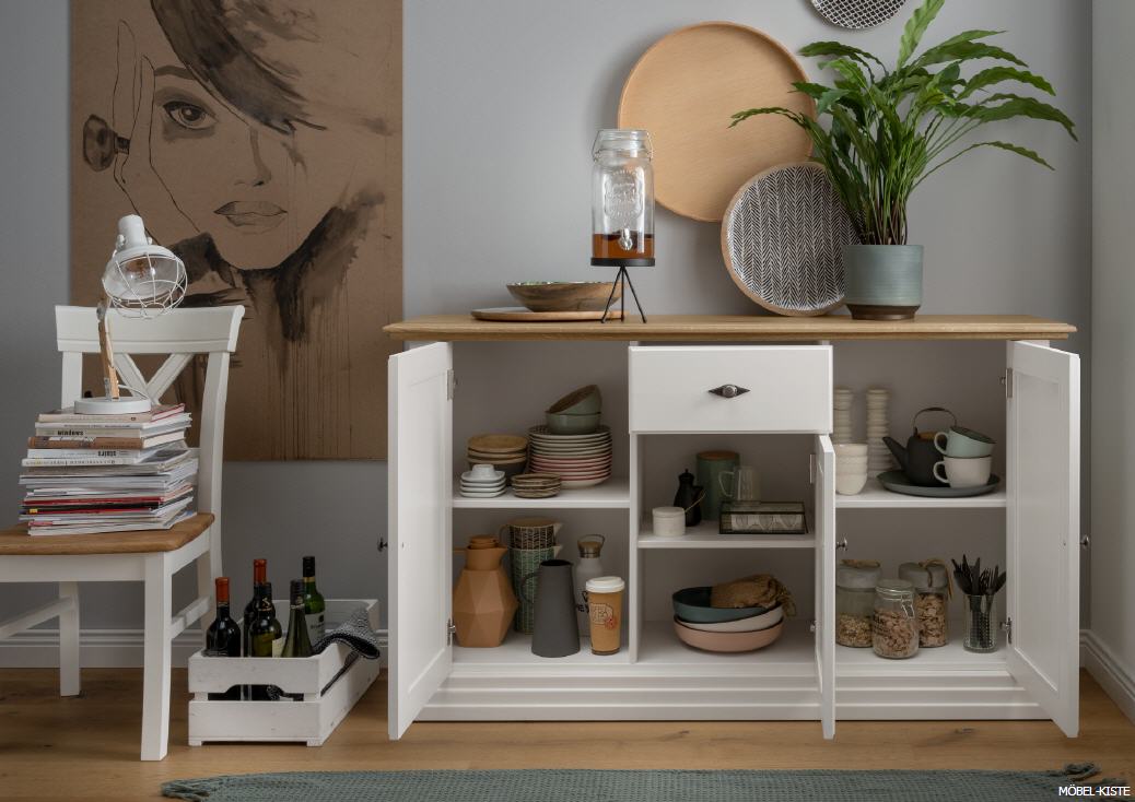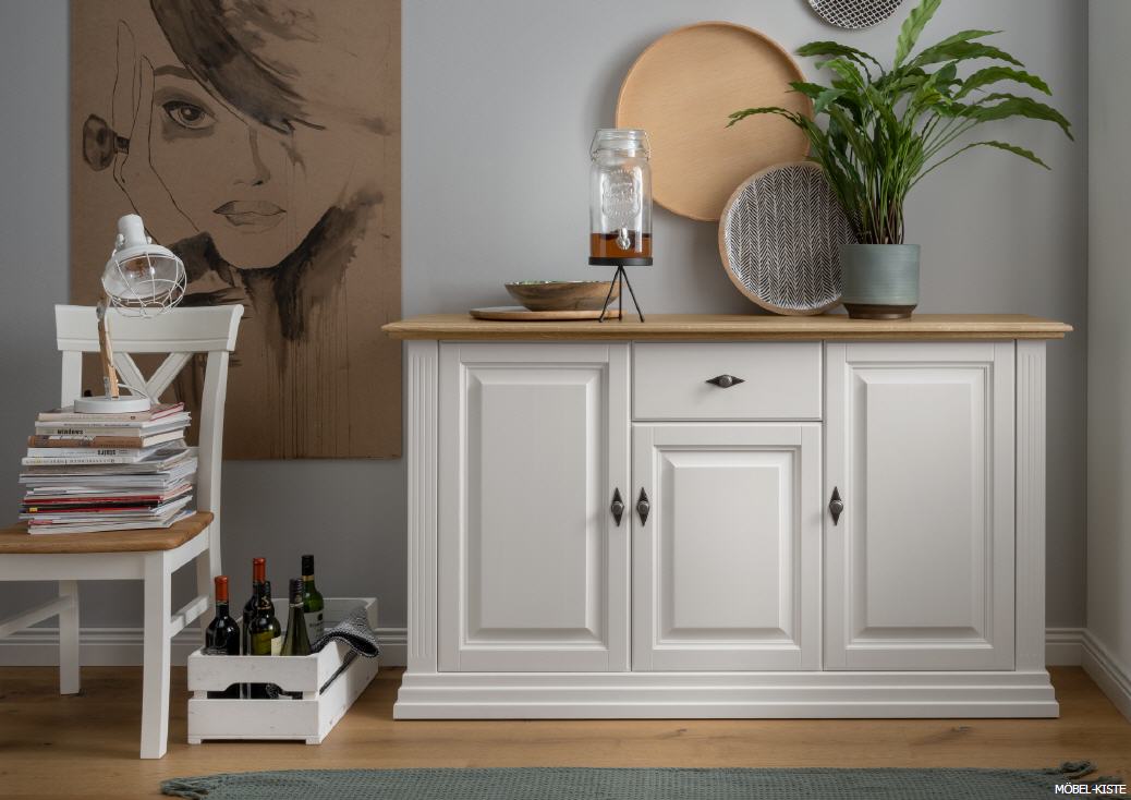 Sie erwerben mit diesem Artikel das Sideboard. Den Aufsatz den man teilweise auf den Bildern sieht, muss extra erworben werden!