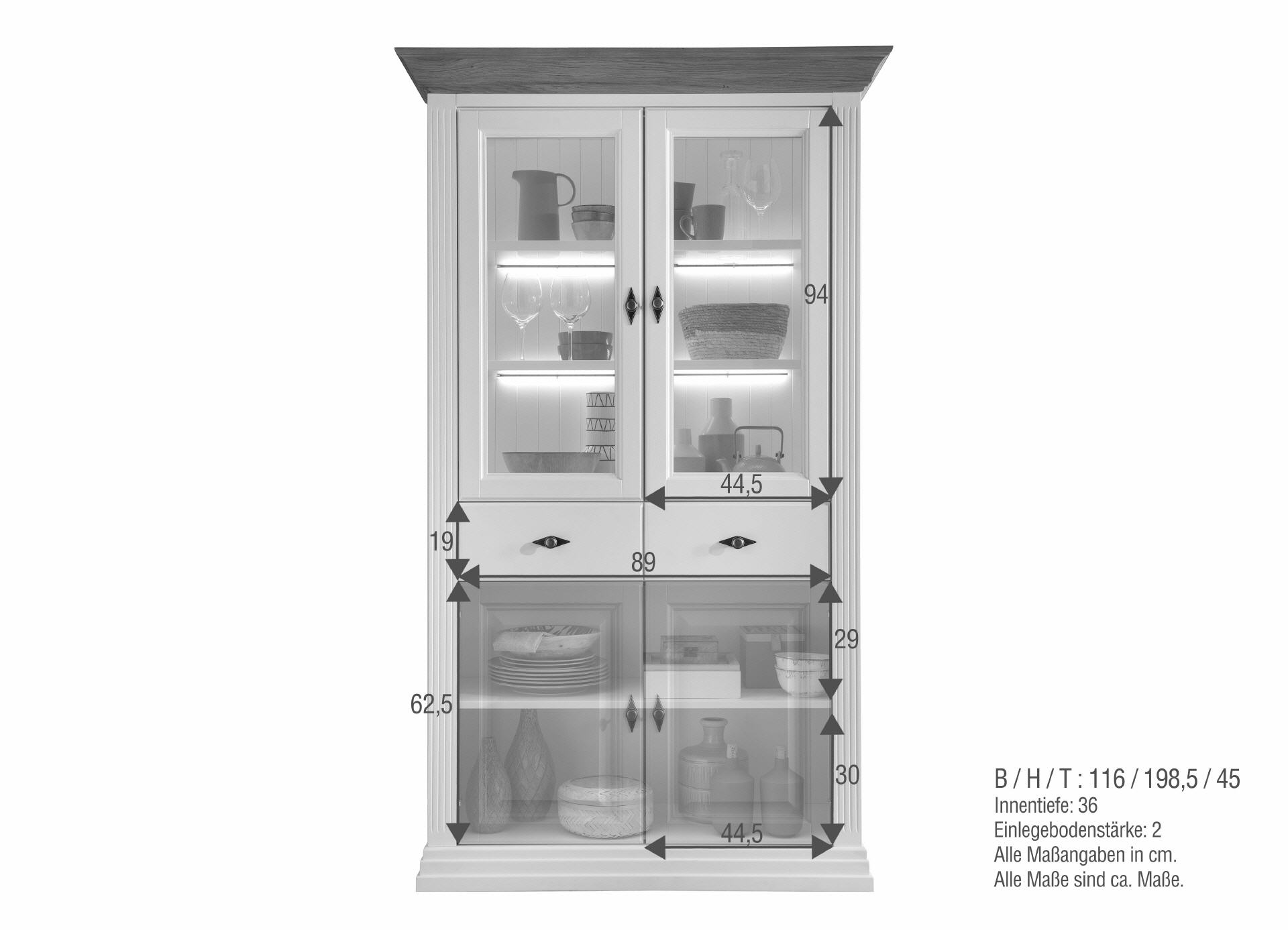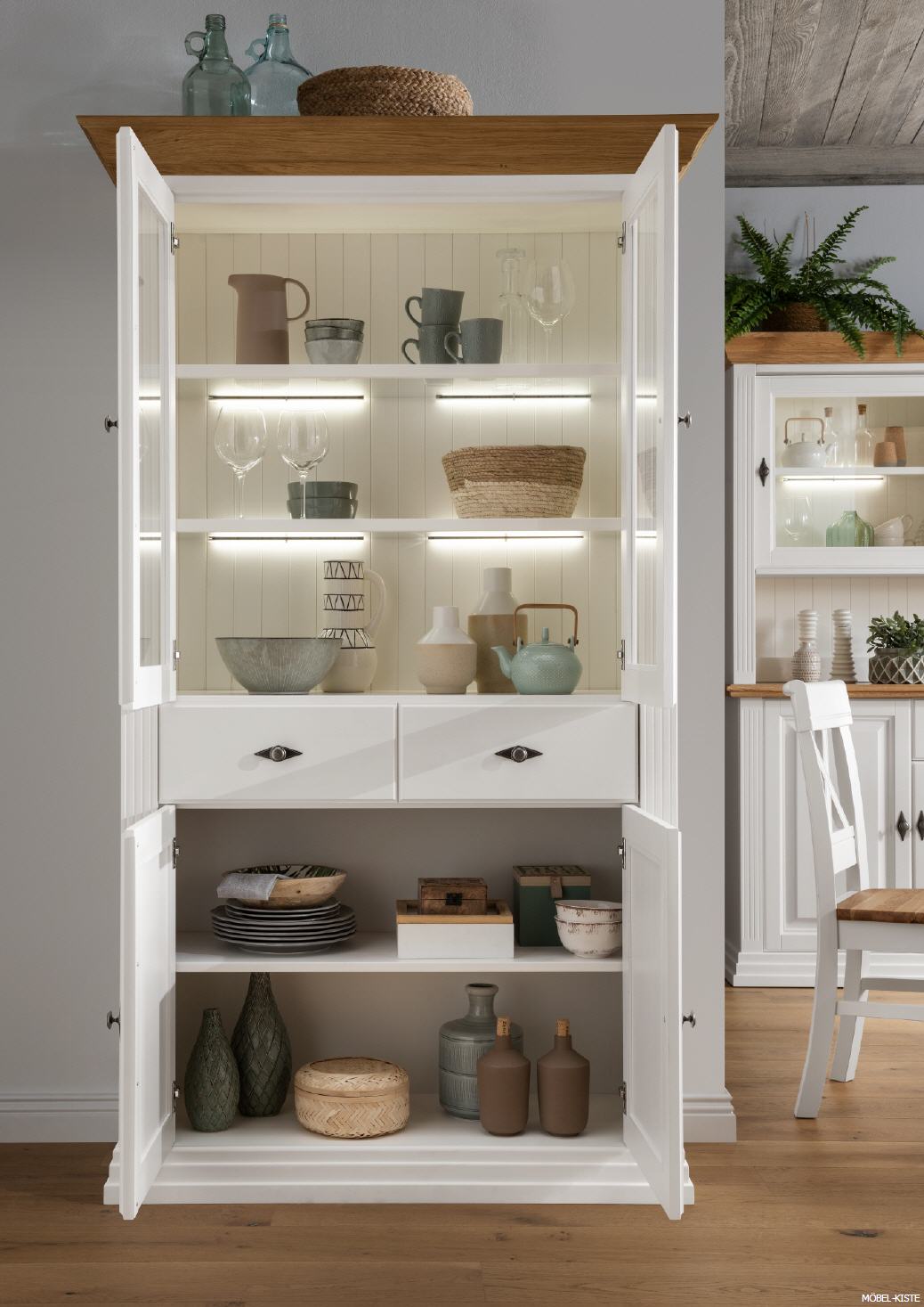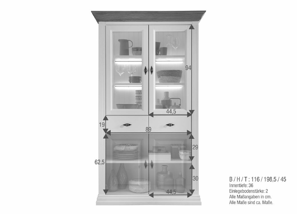 Landhaus Vanessa Vitrine-2 Kiefer/Eiche massiv