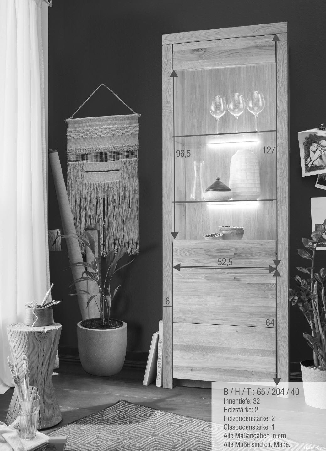 Vitrine 1 "Lena" mit Glastür Eiche massiv